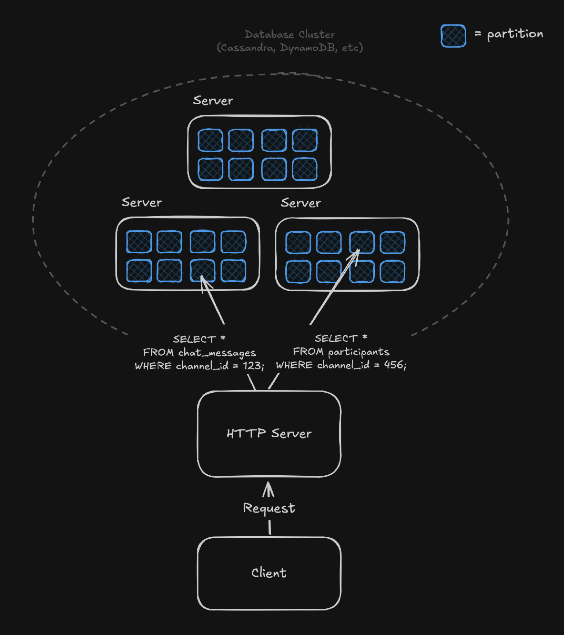 These systems use partitioning keys to co-locate related & similarly structured data. For example, a typical chat application on Cassandra might define:
